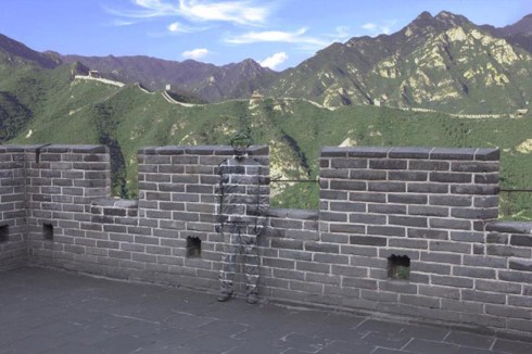 ‘The invisible man’ includes large-scale photographs of his recent self-camouflage works ‘hiding in the city’ as well as ‘dragon series’. In ‘hiding in the city’ series of photographs, bolin pays tribute to the history of china, particularly that of beijing. In one group of images ‘dragon series’, the artist has chosen the iconic site of the ‘nine dragon wall’ in beihai park to celebrate the grandeur of chinese culture and history. the motif of the five-clawed dragon, symbol of imperial power, chasing the inflamed pearl is prominent in chinese classical culture. the ceramic wall is also a magnificent illustration of chinese artistic craftsmanship.