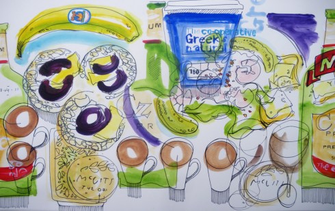 A year ago, David Meldrum, successful illustrator and graphic designer, set himself an unusual artistic and culinary challenge. Starting on 15th June 2010, he decided to illustrate everything that he ate or drank, every day, for a year and so it was The Food Illustrator was born.