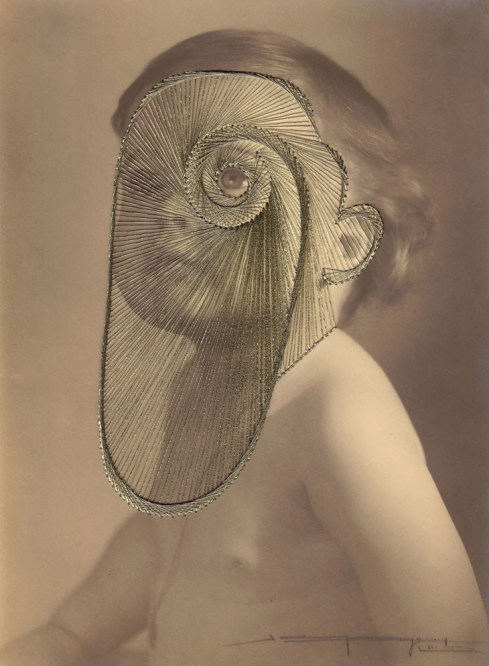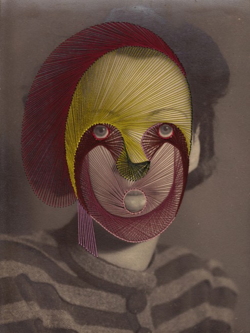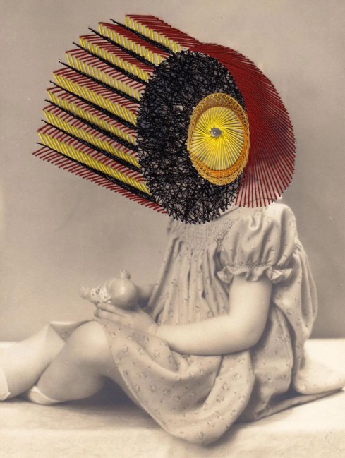 Anzeri directly sews into found vintage photographs creating embroidered patterns that adorn and garnish the figures.