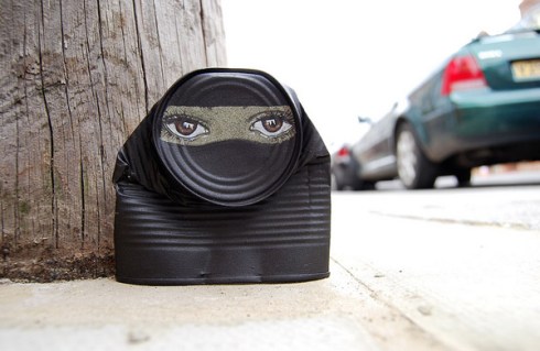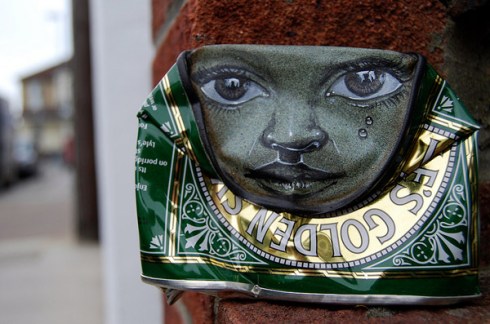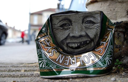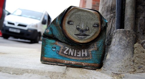 “UK – The “Can Man” street artist of My Dog Sighs . He paints and humanizes of found objects (particularly cans) then replaced it on the street. Distortions cans or tins are different costumes for these imaginary characters”.