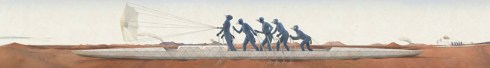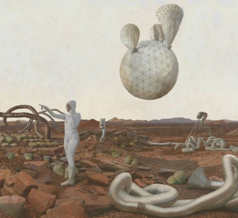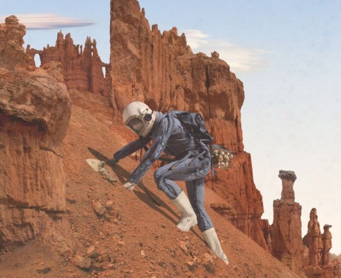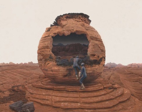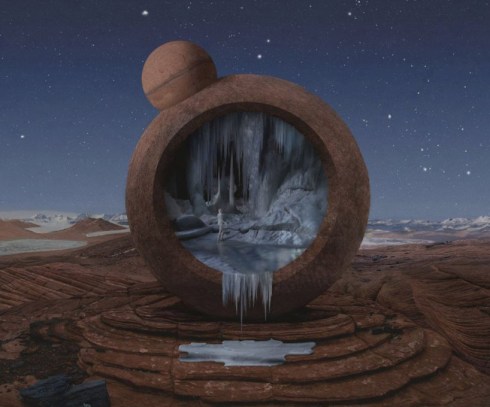 To acknowledge curiosity’s touchdown on the red planet, NASA commissioned the anglo-american duo known as kahnselesnick to create a series of work, entitled ‘mars: adrift on the hourglass sea’, representing their vision of existence on mars. The artists adorned photo-mosaic panoramas provided to them by NASA of earlier expeditions by rovers ‘spirit’ and ‘opportunity’
