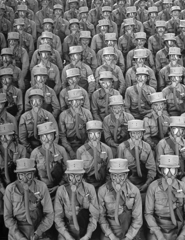 1942 | Row upon row of WACs (Women’s Army Corps members) don gas masks for a training drill at Iowa’s Fort Des Moines. Originally published in the September 7, 1942, issue of LIFE.