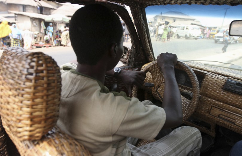 wicker-covered car by ojo obaniyi