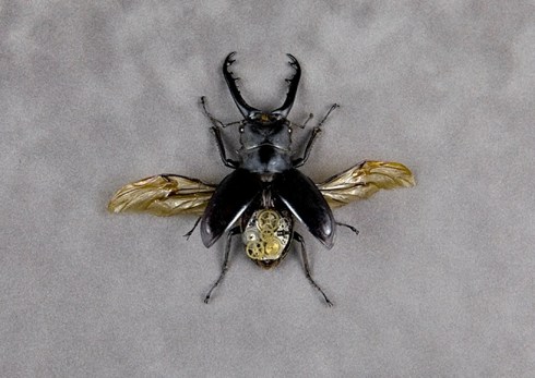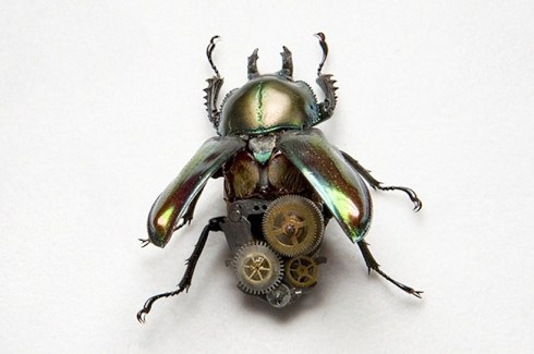 Lindsey Bessanon began her creative career as a jeweler in arizona, USA in 2003, casting insects in gold or silver. However, bessanon’s work soon morphed into one more sculptural in nature as she hoped to appreciate the coloring of each bug by adding metallic parts, resulting in a collection of robotic bugs.