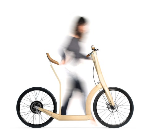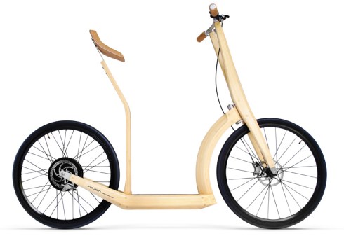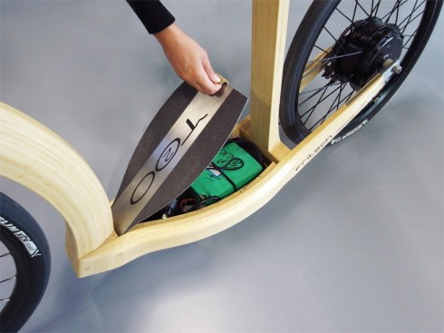 30 SepThe ‘t20’ bamboo bike is a prototype by french designer Antoine Fritsch as part of an ongoing research project to investigate themes exploring changing behaviors related to sustainable development. Although the body is made out of bamboo, other elements include cork, steel, aluminum and rubber. Surprisingly, the small motor, which is hidden under the footrest, can reach a cruising speed of 35 km/hr (21.7 mph) for a range of about 40 km/hr (24.8 mph). The acceleration works similar to a scooter, employing manual power from the user to push the bike forward until it gets going, while a hybrid cork structure acts as a fusion between a seat and backrest for a comfortable ride.