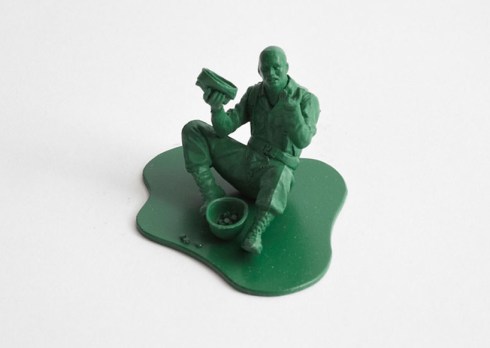 the 7cm-high figurines reference the classic toy army soldier model with a pool-shaped base and a similar green finish. featuring figurines in four different scenarios, the series is at once disturbing and honest, showing the reality and the many detrimental influences of war.