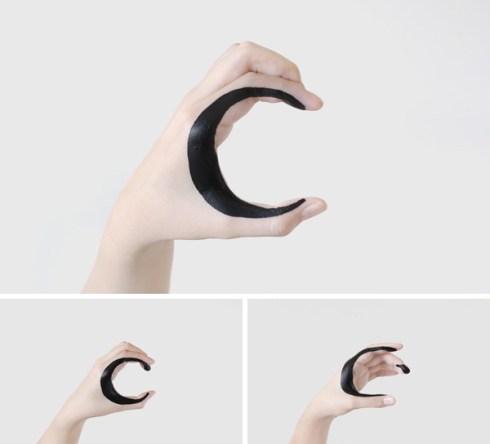 I created 26 sets of these inked shapes and drew them on my hands.Each set is made to create both an upper-case and a lower-case letter, such as A and a. I also created some italic letters, hand-writing letters and some new typefaces with the same shapes”.