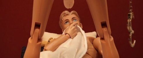 Complemented with tongue-in-cheek titles, the outlandishly gruesome images often include ken, barbie’s on-and-off-again boyfriend, in the unfortunate position of victim: decapitated with a box of chocolate in hand, hung upside down and drained of his blood, scrubbing the floor with a sponge while naked on a leash, and many other unlucky roles.