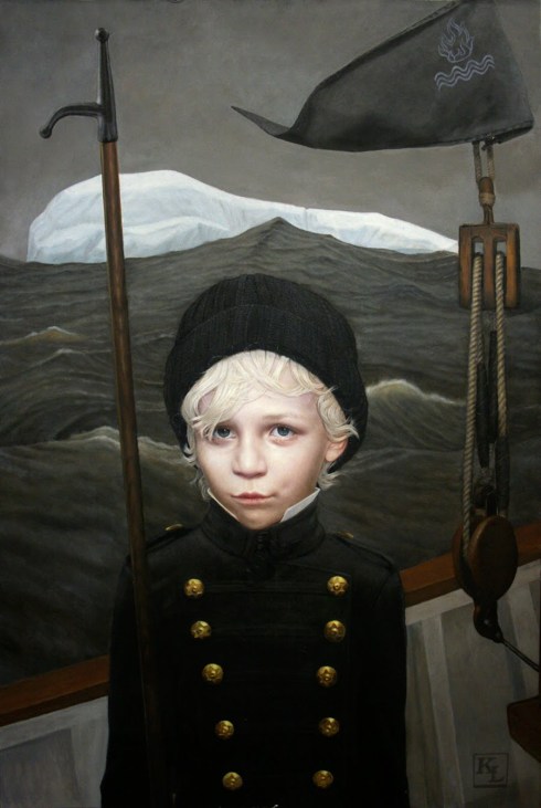 First, the Golz begins by selecting an antiquated painting possessing a photorealistic quality in the vision of the sitter’s face. she then develops a studio setting in which to picture the modern body and renaissance face in a manner which may seamlessly combine both elements in a single still. Through the use of strategic lighting and particular positioning of the body of the sitter, the artist is able to re-envision the original artwork as a modern photographic representation. finally, the artist places the painted sitter’s head upon the digital image picturing the figure of a person from today in post production. In this way, Golz frees the painted renaissance persons from their stiff posture and conservative dress so that their facial expressions may be more recognizable to a contemporary audience”.