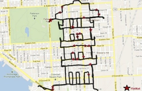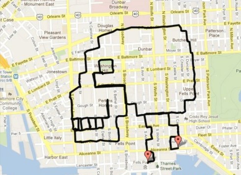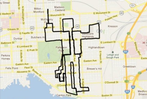 “Baltimore, maryland, USA-based cyclist and artist Michael Wallace, has developed an portfolio comprised entirely of bike-traced city-scale sketches.